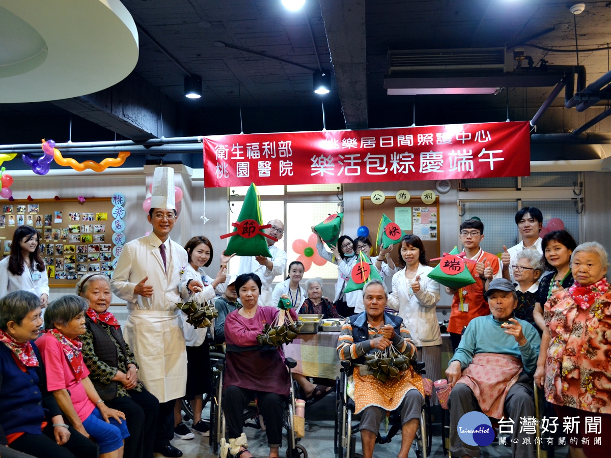衛生福利部桃園醫院於24日上午舉行「桃樂居慶開幕、樂活包粽慶端午」記者會。桃醫院長鄭舜平表示,為配合老年化社會來臨及政府的長照政策,桃園醫院兩年前即著手規劃日間照護中心─「桃樂居」,日照中心空間寬廣、全新裝潢、各種貼心設備及院方長照團隊,優質軟硬體,不僅讓日照中心的長者們快樂生活,也讓家屬們放心、安心。