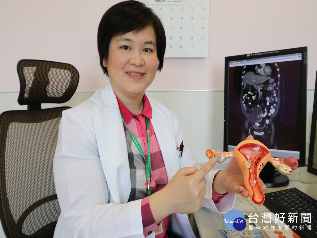 醫師指著卵巢甲狀線癌位置。林重鎣翻攝