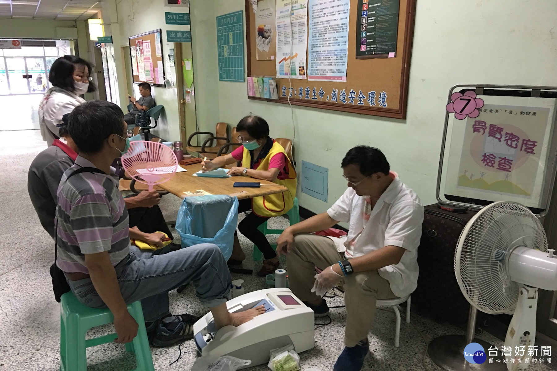骨動健康 ,暑立新營醫院醫護人員為長者進行骨頭密度檢查。