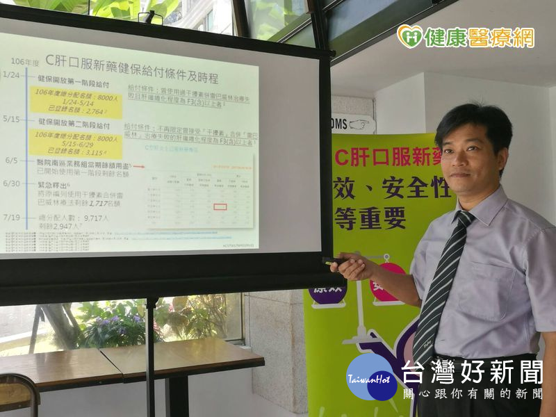 吳明順主任表示,自從健保1月24日開放C肝口服新藥給付,上個月底,又緊急釋出傳統使用干擾素治療的1717位名額納入新藥給付,截至7月19日僅剩2947名額,預計今年開放的8000位名額,9月底前,就可能使用完畢,建議患者把握機會。